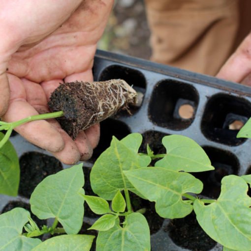 - นำวัสดุปลูกใส่ก่อนเช่น ดิน แกลบดำ ขุยมะพล้าว และตามด้วยเมล็ดพันธุ์กล้า